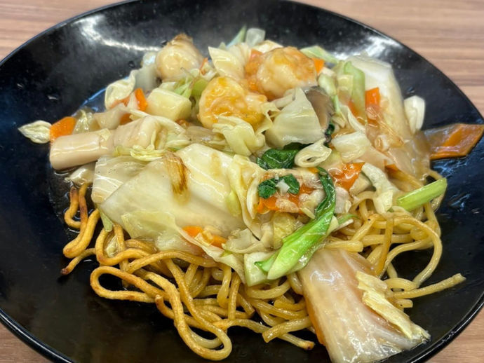 Today's Lunch Special 2025/08/18 Today's Lunch Special @Japanese Kitchen SAKURA 「特製五目あんかけ焼きそば ご飯とスープ付き」 "Special Gomoku Ankake Yakisoba...